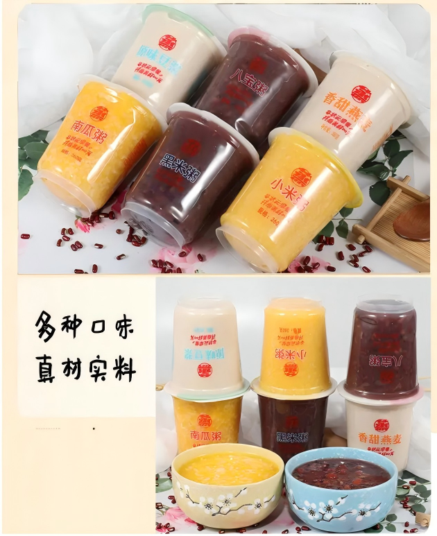 廣泛產(chǎn)品適用性除八寶粥外,亦適用于奶茶、果汁、純凈水、酸奶、果凍等多種杯裝液體及半流體食品的包裝。